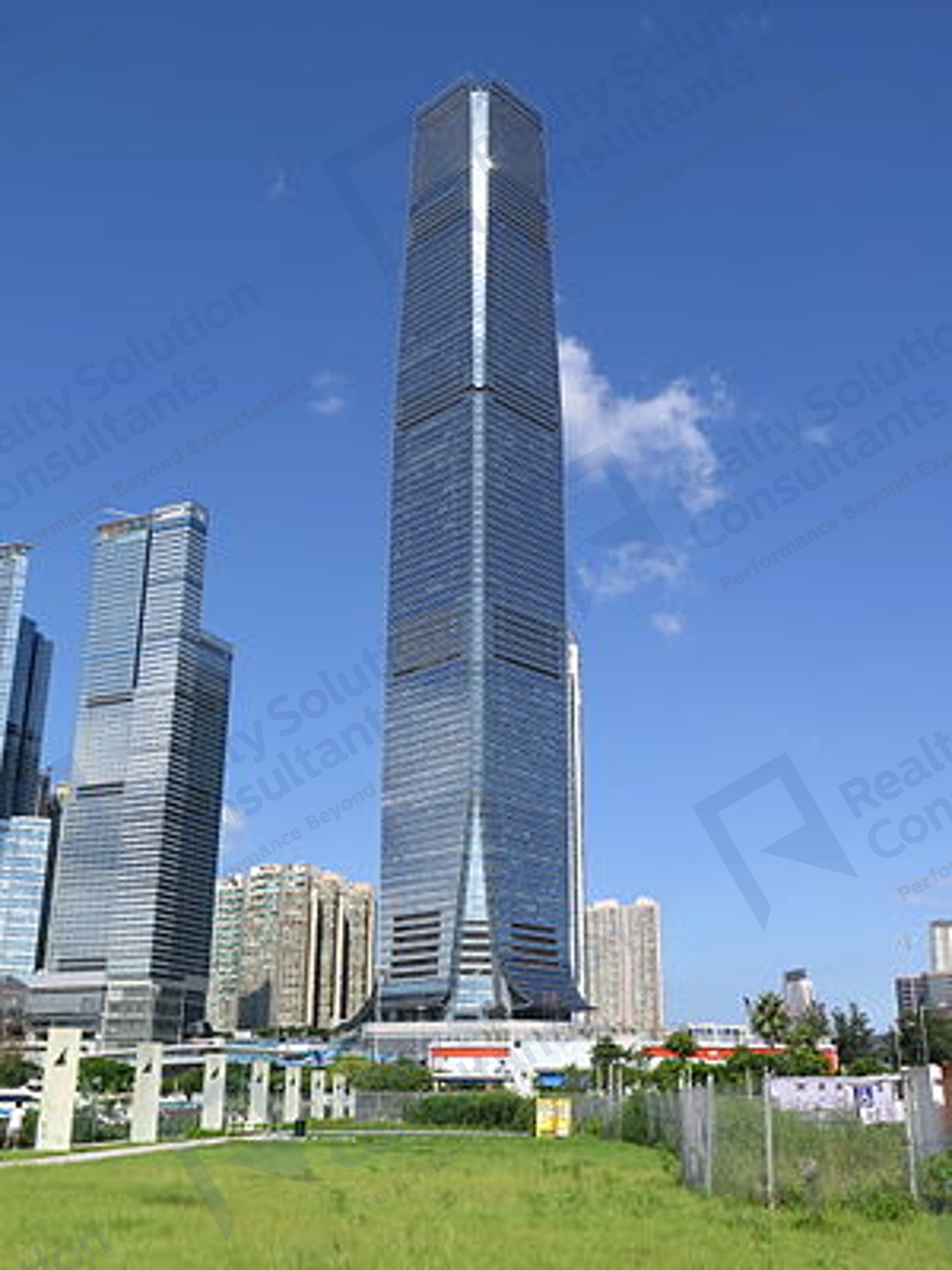 環球貿易廣場位於香港西九龍柯士甸道西1號,是九龍站Union Square第七期發展計劃。環球貿易廣場是一座樓高118層的綜合式大樓,可用樓層水平高度達490米,總樓面面積為2,822,039平方呎;分別有250萬平方呎頂級商辦大樓,每層面積約35,000平方呎;於第100層設有天際100觀景台,頂層為香港麗思卡爾頓酒店。目前(2019)為全球第12高、全香港最高及唯一樓層超過100層的香港建築物。
